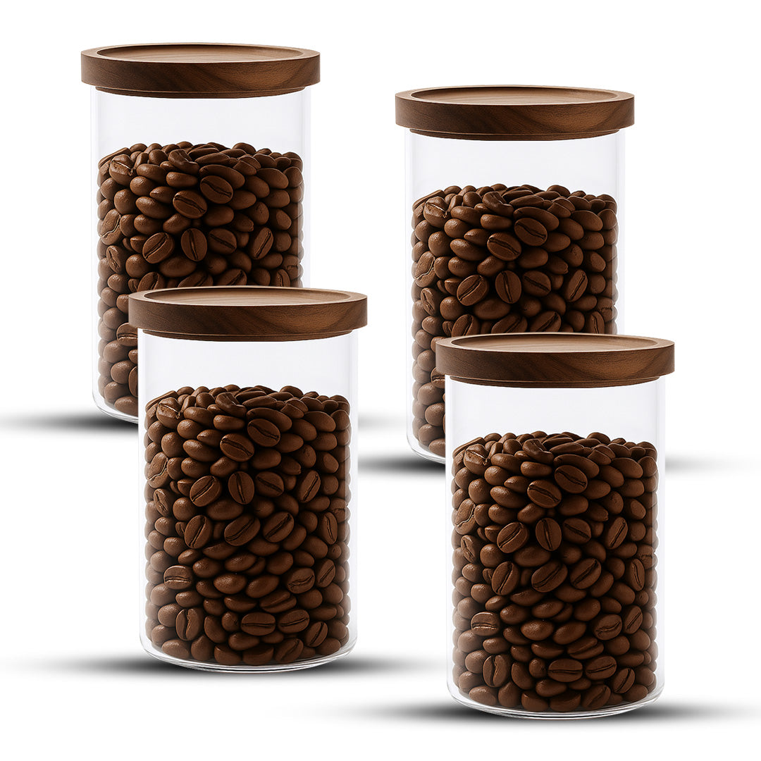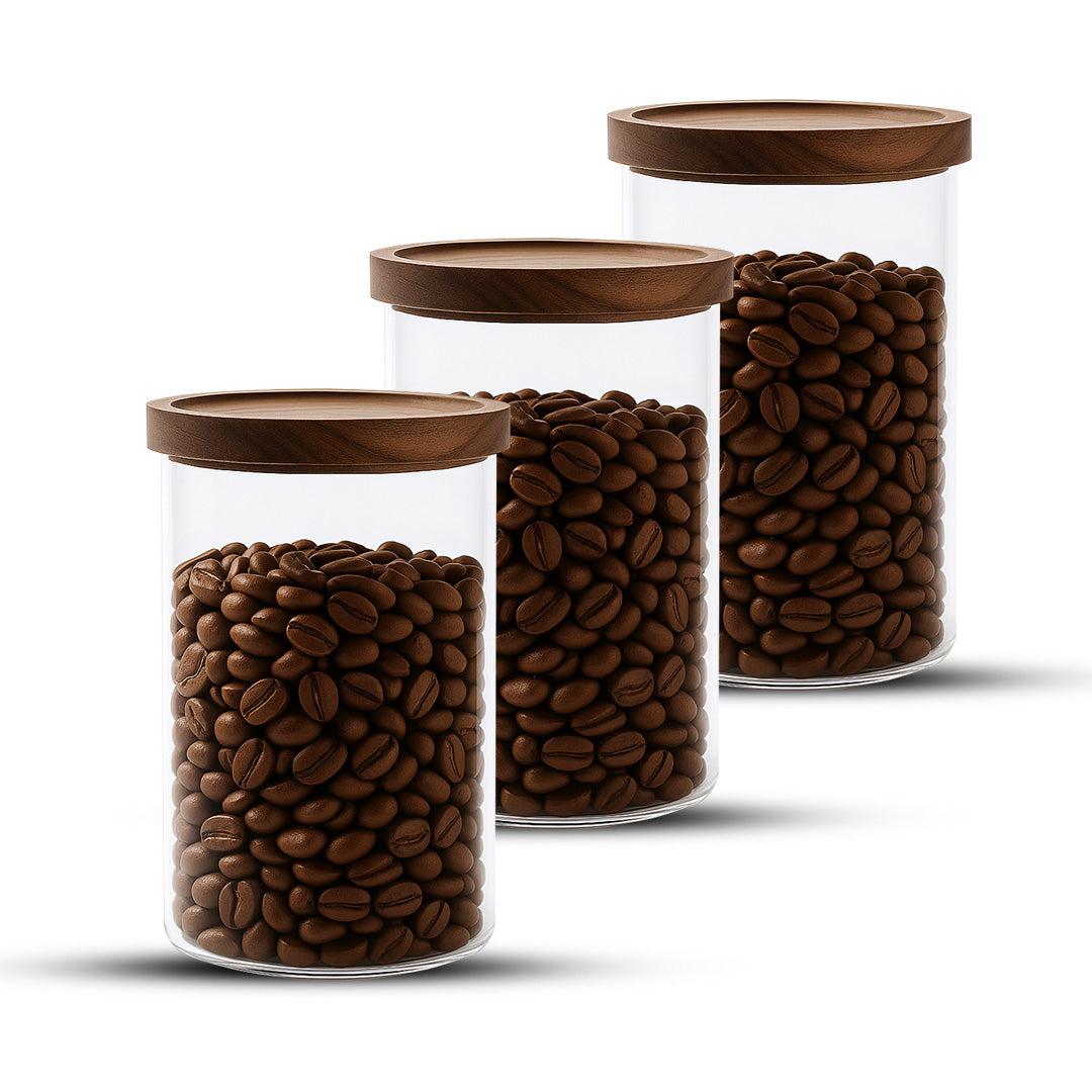 Contenedor Hermético de Vidrio Redondo con Tapa de Acacia