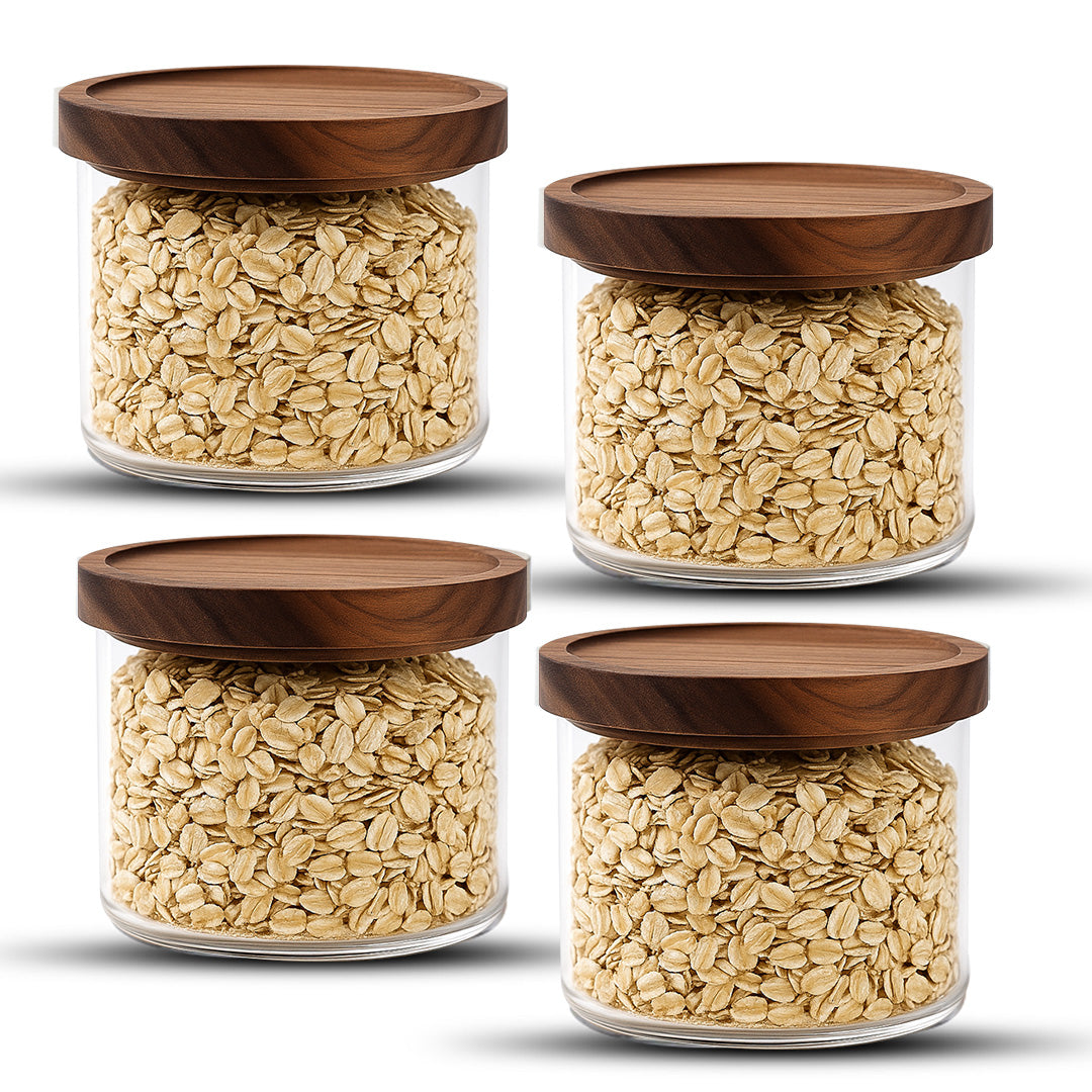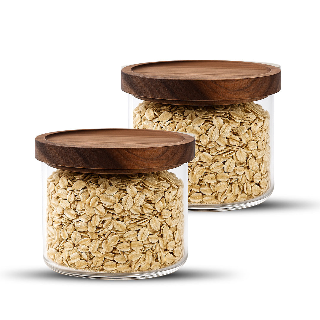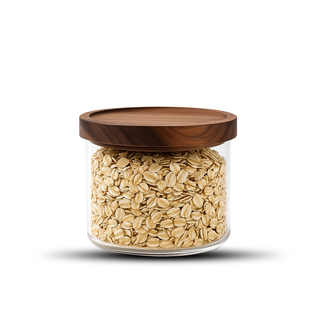 Contenedor Hermético de Vidrio Redondo con Tapa de Acacia